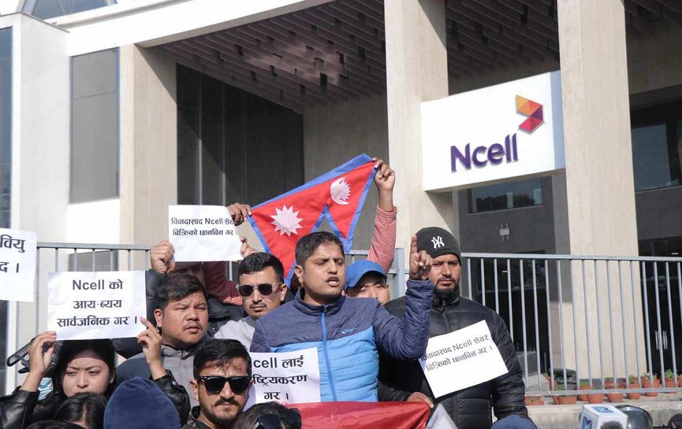मुकाम डेस्क । नेकपा (एमाले) निकट विद्यार्थी सङ्गठन अनेरास्ववियुले लैनचौरस्थित दूरसञ्चार सेवा प्रदायक कम्पनी एनसेलको कार्यालय अगाडि विरोध प्रदर्शन गरेको छ ।