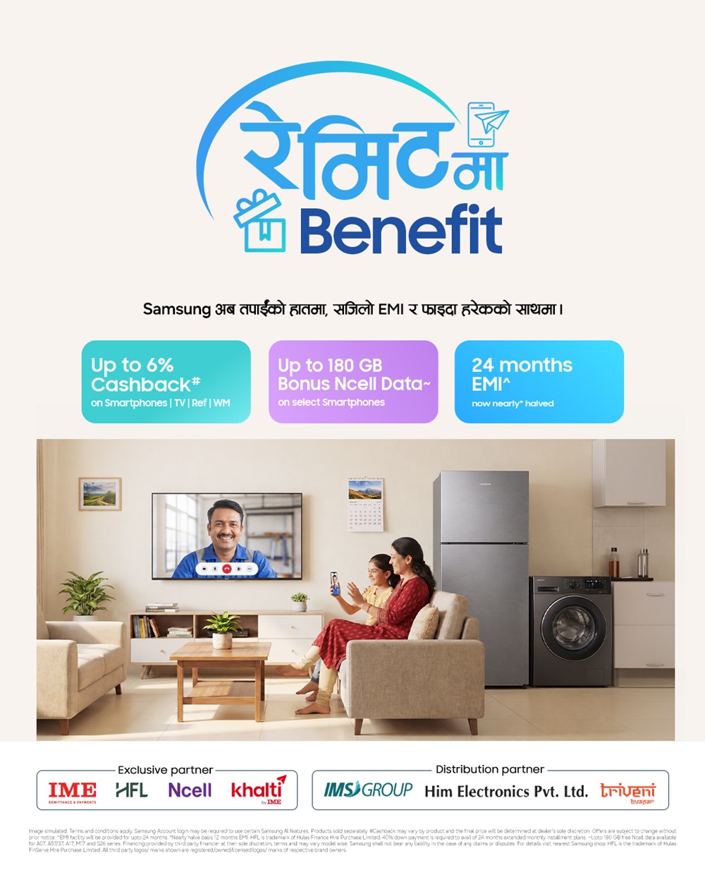 - सामसङ नेपालद्वारा ‘रेमिटमा बेनिफिट’ अभियानको घोषणा